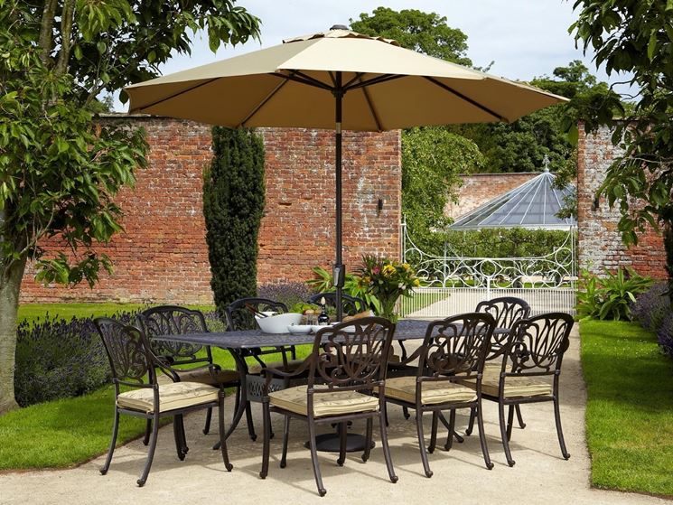 Nell'ampia gamma d'arredamento esterno giardino, tavoli e sedie offrono la possibilità di consumare pasti e spuntini all'area aperta mentre panchine, sedie a sdraio, poltrone da esterno, lettini permettono di svolgere attività più rilassanti come la conversazione, la meditazione, la lettura e il riposo. A meno che la vegetazione non costituisca un adeguato riparo, in giardino non possono mancare accessori come ombrelloni e gazebo, disponibili in commercio in una grandissima varietà di modelli e aventi la funzione di proteggere dai raggi solari e dalle intemperie. Gli ombrelloni e i gazebo risultano spesso facilmente ripiegabili e trasportabili, i secondi, in particolare, possono invece rappresentare, degli elementi decorativi capaci di creare atmosfere suggestive, estremamente romantiche ed eleganti.