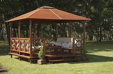 Il legno impiegato per la realizzazione del gazebo è sottoposto a dei trattamenti che gli consentono di garantire una buona durata nel tempo. Per non coprire la naturale bellezza si usano delle sostanze trasparenti. Il legno resiste molto bene a qualsiasi condizione atmosferica e solo dopo alcuni anni può iniziare a danneggiarsi. La forma classica del gazebo in legno è quadrata e termina con una punta sulla sommità. Oggi le forme che il gazebo in legno assume sono le più svariate e questo permette al cliente di scegliere tra una vasta gamma di gazebo. La forma rettangolare con la parte alta piana è un'altra versione piuttosto interessante che apporta certamente al giardino un tocco di modernità. La copertura del gazebo in legno è realizzabile con diversi materiali. Per uno stile più rustico si possono usare delle tegole, mentre per uno stile più attuale si può usare un telo. La copertura con il telo è piuttosto comoda, si tratta di un telo che impedisce ai raggi del sole di filtrare e questo assicura una protezione totale. Inoltre, se si sceglie la versione apribile, il telo non è statico, ma può essere aperto e chiuso secondo le necessità. Questa particolarità permette di garantire al telo una durata maggiore, perché durante il periodo invernale non resta esposto all’azione della pioggia. Il telo, anche se creato appositamente per questa funzione, può sporcarsi e logorarsi. In tal caso, presso un negozio specializzato, se ne può acquistare un altro di egual misura magari con una fantasia diversa che contribuisca ad arricchire il giardino. La copertura può essere scelta anche con delle lamelle di legno, anch’esse apribili, che permettono così di far filtrare la luce. Le soluzioni, nel caso del gazebo in legno, sono davvero tante, occorre solo scegliere il gazebo che meglio si abbina al proprio giardino.