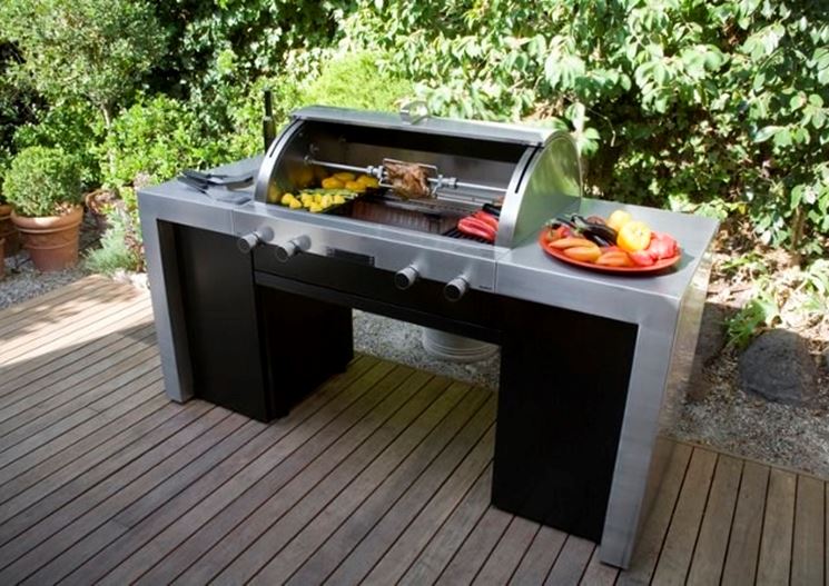 Se c'è abbastanza spazio la zona pranzo può essere rifinita con l'aggiunta di una cucina da esterni per la quale sono necessari un barbecue un ripiano di lavorazione e preparazione dei cibi e un piano d'appoggio. In commercio sono disponibili barbecue alimentati a gas, a carbone, a legna e a pellet, realizzati in pietra, mattoni o metallo, adatti per semplici grigliate o per preparare piatti elaborati. La zona pranzo del giardino può essere resa ancor più confortevole e raffinata se realizzata sotto un pergolato ricoperto da rampicanti fioriti che oltre a garantire intimità e riservatezza agli ospiti genera un piacevole impatto visivo armonizzandosi col paesaggio naturale circostante. Al di sotto della pergola possono inoltre essere collocate delle caratteristiche lampade da giardino.