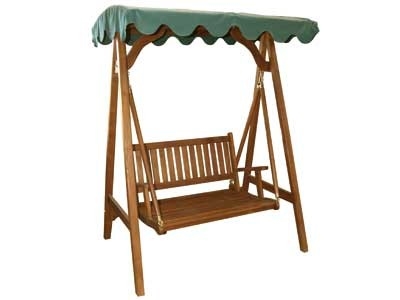 Il dondolo maggiormente conosciuto è quello a due o tre posti, il quale comunque può sorreggere un peso limitato. La struttura è così formata: una seduta, due braccioli laterali, un tettuccio para sole. La seduta consente sia di sedersi che di sdraiarsi, e dandosi una leggera spinta, è la seduta stessa che inizia a oscillare. Trattandosi di un movimento che ha bisogno di un certo spazio, non è mai opportuno collocare il dondolo in uno spazio ridotto, si rischierebbe di urtare contro oggetti. La funzione del tettuccio parasole è appunto quella di proteggere dal sole. il dondolo può avere una copertura in telo, simile alle tende da sole. Questo tessuto può essere anche impermeabile, protegge dai raggi dannosi del sole, e può essere scelto in differenti fantasie. Generalmente la fantasia del tettuccio parasole è coordinata con il tessuto dei cuscini della seduta. Il tessuto che riveste i cuscini è sempre sfoderabile, e questo consente un facile lavaggio. Quando il tessuto si macchia, soprattutto per quanto riguarda il tettuccio per il sole, non bisogna mai usare sostanze troppo aggressive, perché potrebbero danneggiare il tessuto stesso. Alcune aziende produttrici di dondoli da giardino offrono la possibilità di sostituire il tessuto del tettuccio e il tessuto dei cuscini qualora fossero rovinati. In alternativa, ciascuno può decidere anche di acquistare del tessuto e rivestire da sé la seduta del dondolo.