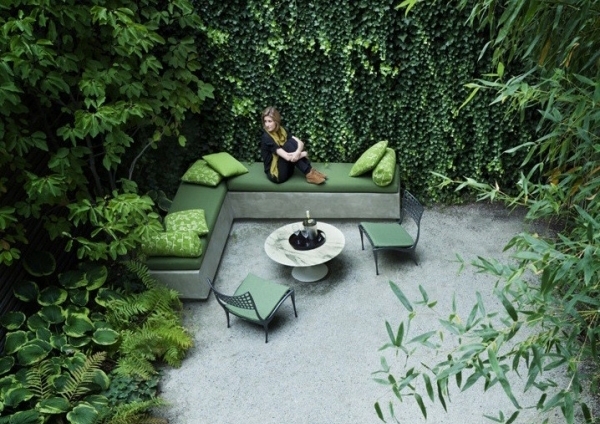 Per ricreare l'atmosfera di un giardino rigoglioso in terrazza usiamo mobili da esterno come panchine o sedie reclinabili. Se lo spazio è sufficiente, il tavolo con le sedie ci permetterà di pranzare o cenare all'aperto durante le giornate serene che regala la bella stagione. Nel caso in cui lo spazio sia limitato, potremo verticalizzare l'area verde e ricreando il fascino di una foresta pluviale con piante verdi e rampicanti. Esistono numerose soluzioni di arredo giardino che aiutano contemporaneamente a isolare dagli sguardi indiscreti l'interno della zona relax e aumentare la presenza di piante anche in spazi molto ridotti. Barriere predisposte con sistemi di vasi montati a scacchiera e collegati tra loro da un sistema di autoirrigazione, permettono di facilitare anche la cura delle piante che sceglieremo di disporre.