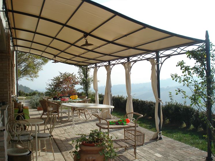 Ma non ci sono soltanto pergole e tettoie da giardino in legno. Negli ultimi anni si sono particolarmente diffuse le coperture da giardino in PVC, strutture leggere e particolarmente resistenti ad un costo sicuramente molto conveniente. Le strutture in PVC, possono perfettamente diventare strutture chiuse ma pur sempre rimovibili. Tra i pergolati sicuramente più belli che ci possono essere troviamo quelli in ferro battuto. Sono in genere coperture per giardino realizzate a mano da fabbri esterni, ma non è raro trovare dei prefabbricati. Il vantaggio di affidarsi ad un fabbro è sicuramente chiaro: la possibilità di personalizzare totalmente la struttura con decorazioni particolari, curve eleganti e raffinate in stile classico stile Libery. Il ferro, inoltre, viene lavorato in modo tale da resistere a qualsiasi agente atmosferico, anche se richiede particolare manutenzione.