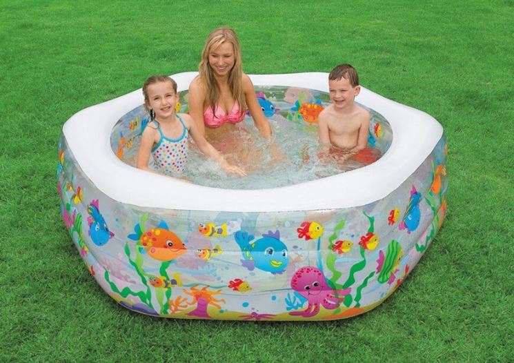 La piscina per bambini presenta determinate caratteristiche che la rendono sicura e adatta anche ai più piccoli. Nella maggior parte dei casi si tratta di piscine realizzate in plastica, dalla forma rotonda o rettangolare, la fantasia è sempre piuttosto allegra, proprio per divertire i bambini. Si tratta di un ottimo metodo per avvicinare il bambino all’acqua. Avendo una dimensione piuttosto ridotta possono essere usate sia in giardino sia sul terrazzo. In breve tempo la piscina è gonfiata, si riempie con una quantità sufficiente d'acqua e si espone al sole. Il bambino entrerà nella piscina grazie all'aiuto dei genitori, i quali avranno anche il compito di farlo familiarizzare con l'acqua. Trattandosi di una piscina dalle dimensioni davvero ridotte, quando il bambino sarà cresciuto, occorrerà acquistarne una più grande. Sono vendute in una confezione in cui non è presente la pompa, perché non è necessario il riciclo dell'acqua dato che facilmente la sera potrà essere svuotata per essere riempita il giorno successivo.