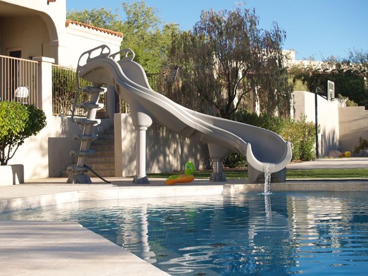 Generalmente sono specificati due diversi tipi di scivoli per piscine: rigido realizzato in plastica oppure gonfiabile. Lo scivolo, al di là del materiale con il quale è realizzato, può avere altezze differenti. Questa caratteristica serve proprio per sceglierlo in base all’età di chi lo utilizzerà. Se lo scivolo sarà usato da bambini, si consiglia sempre la presenza di un genitore e un’altezza adeguata affinché anche il bambino non sia spaventato. Lo scivolo in plastica gonfiabile è molto comodo perché durante l’inverno può essere sgonfiato e riposto. Naturalmente sulla confezione è riportato il peso massimo che il bambino può avere per non danneggiarlo e soprattutto per non rischiare che possa farsi male. Si sale grazie ad una piccola scaletta e la dimensione dello scivolo è variabile. Lo scivolo in plastica è realizzato in plastica rigida, può avere un’altezza variabile, vi si accede con una scaletta, e una volta arrivati sulla sommità, un getto d’acqua facilita la discesa. Lo scivolo può essere lineare oppure può avere delle curve. È importante che si impari correttamente ad usare questo gioco per piscina, quindi è importante utilizzarlo scendendo sempre nella posizione corretta e uno alla volta. L’uso scorretto dello scivolo potrebbe far verificare spiacevoli situazioni.