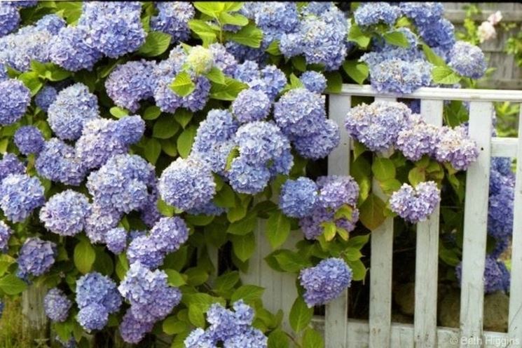 Le Ortensie sono piante originarie della Cina e del Giappone, molto usate per la decorazione di balconi e terrazze all'interno di ampie fioriere per la loro fioritura molto bella ed importante dal colore blu, viola, bianco e rosa che varia in base al ph della terra: con un ph intorno a 4/5 i fiori avranno la colorazione tendente al blu mentre se il valore del ph è intorno al 6 il colore tenderà al rosso. Sono piante resistenti che si ammalano poco, che necessitano di molta acqua mentre la concimazione è sufficiente effettuarla una volta all'anno, in primavera. Sono piante adattabili che vivono bene all'ombra ma anche al sole, per le quali il rischio maggiore è rappresentato dal gelo dell'inverno, durante il quale sarebbe opportuno ripararle. L'effetto donato ai balconi o alle terrazze da fioriere di Ortensie è in ogni caso assicurato, per tutta l'estate, da fioriture ricche e continue.