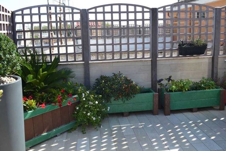 Coltivare piante e fiori in seno all’ambiente domestico può essere molto rilassante; la presenza di un terrazzo in questo senso può aiutare molto, essendo uno spazio molto più semplice da gestire rispetto ad un giardino nel quale, data la presenza di terreno, erba, piante etc. i lavori di manutenzione da svolgere possono essere molto più difficili e lunghi, non sempre alla portata di tutti. Sul terrazzo è possibile inserire diversi elementi per la coltivazione di piante e fiori: oltre ai normali vasi, di qualsiasi dimensione, materiale e colore, menzione speciale va riservata alle fioriere, una versione più capiente e versatile dei classici vasi. Le fioriere da terrazzo sono un’ottima soluzione in grado di conferire vitalità e bellezza a qualsiasi spazio esterno, oltre che essere perfette per ospitare piante, fiori e perfino ortaggi di ogni specie. In commercio esistono diverse tipologie: quelle in legno sono solitamente le più consigliate perché più "naturali" e durevoli.