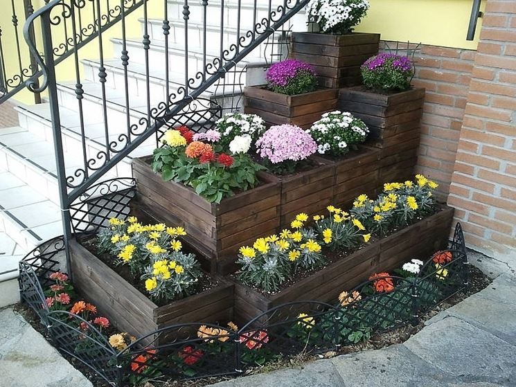 Sia i vasi che le fioriere ci aiutano nella sistemazione di piantine e fiori, che altrimenti nel terreno soffrirebbero oppure abbelliscono uno spazio ridotto o angoli particolari del gardino. Nei vasi, che in commercio troviamo di varie dimensioni e forme, possiamo collocare anche i fiori da terrazzo e realizzare un ambiente colorato e profumato in un piccolo spazio. Piantine pensili, che ricadono verso l'esterno del terrazzino sono in grado infatti di coprire e proteggere la nostra privacy in modo naturale e delicato. D'altra parte le fioriere per esterni, ci permettono di avere maggiore spazio a disposizione. Anche il questo caso le forme e le misure sono varie, a seconda della loro collocazione dicideremo quale è la più idonea. Alcune fioriere formano una scaletta, ideali da appoggiare ai muri della casa.