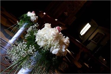 Un fattore molto importante è il colore coordinato con l'abito degli sposi e i dettagli della cerimonia. Non possiamo scegliere il fiore perfetto senza saperne il significato. Nel giorno del matrimonio, anche i fiori devono parlare d'amore. Se i toni predominanti sono quelli del bianco, possiamo scegliere le classiche rose bianche, simbolo di purezza e innocenza, o le più rustiche margherite che, invece, parlano di fedeltà. Anche un fiore come l'iris bianco, simbolo di giustizia e passione, è molto decorativo e si presta bene a composizioni originali. Tra i toni del bianco, troviamo anche l'orchidea, la gardenia e la calla che, se composte con le loro larghe foglie verde scuro, rendono più luminosi gli spazi della chiesa. Se invece, abbiamo scelto un colore, non dobbiamo dimenticare che i fiori arancioni, come le rose di questo colore, parlano di infedeltà e gelosia e non sono molto indicate per celebrare un matrimonio. Possiamo tranquillamente scegliere tra i solari girasoli, i più comuni papaveri rossi o i garofani. Sinonimo di delicatezza e raffinatezza invece, sono le morbide peonie rosa e le rose rosa. Un vero tocco di eleganza.