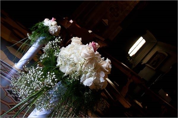 Ora che abbiamo studiato la chiesa e individuato il fiore che fa per noi, non ci resta che studiare le composizioni. La cosa da non dimenticare è che l'addobbo floreale matrimonio rappresenterà per tutti l'anima della cerimonia e dovrà essere studiato per gli spazi che lo accoglieranno in chiesa. Dovrà, quindi, rispecchiare il messaggio scelto dagli sposi. Ma come procedere nella composizione? Prima di tutto creiamo una base neutra, costituita da foglie verdi, o felci, e velo da sposa, entrambi molto resistenti e in grado di creare una base solida e duratura nel tempo. Per fare ciò, possiamo usare della comune spugna da fiorista. A queste, aggiungiamo il corpo vero e proprio, composto dai fiori scelti in precedenza. Calle, orchidee, rose: bianche o colorate, l'importante è che rispettino la "regola" della nuance di colore univoca, ad esempio il rosa o il rosso, il lilla o il blu. La stessa che poi ritroveremo anche negli addobbi per il ricevimento e nel bouquet della sposa. Gli addobbi possono essere arricchiti anche, con frutta di stagione, come il melograno, le arance o i grappoli d'uva, oppure con piante aromatiche ed erbe.