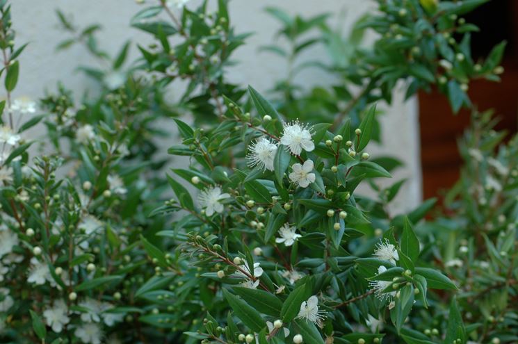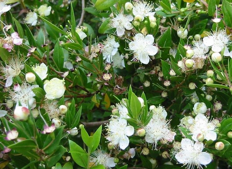 La pianta di mirto tende a crescere in forma cespugliosa e non necessita di potatura. Se però si vuole dare la forma ad alberello, sarà opportuno periodicamente risagomare la pianta. Il mirto pianta è un arbusto con bei fiori bianchi profumati che compaiono sui rami dalla primavera inoltrata fino in estate, sostituiti da bacche scure dall'autunno fino all'inverno. Grazie a questi elementi, che rendono l'arbusto molto coreografico, il mirto pianta si presta molto bene ad ornare i giardini, soprattutto nelle zone in cui la pianta trova il suo habitat ideale. Altra interessante caratteristica di questo arbusto è la lunga durata sia della fioritura che della presenza delle bacche sulla chioma: entrambe durano diverse settimane e rendono la coltivazione del mirto la soluzione ideale per chi vuole un giardino sempre ricco di elementi decorativi. Alcune varietà di mirto tendono a fiorire due volte l'anno, in tarda primavera e ad inizio autunno, ma gli agricoltori, con gli ibridi selezionati, cercano di inibire questa doppia fioritura, che sarebbe a scapito della qualità delle bacche. La moltiplicazione delle piante avviene soprattutto per divisione dei polloni o per talea.