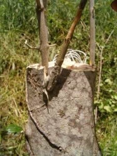 L’innesto a corona consiste nel tagliare il tronco del portainnesto formando una superficie circolare. Sulla stessa si applicheranno delle marze inserite lungo dei tagli che circondano i bordi. Con questo innesto si imposterà la forma della nuova pianta. L’innesto a spacco diametrale consiste nell’innestare una sola marza al centro di un portainnesto tagliato lungo tutto il suo diametro. Per collocare la marza, lo spacco deve essere tenuto aperto tramite un cuneo. In questo innesto si possono inserire anche due marze, da collocare ai lati dello spacco. L’innesto a spacco inglese si pratica, a primavera, su piante giovani. Con questa tecnica, il nesto e il portainnesto devono avere lo stesso diametro. La marza, con solo una gemma, e tagliata obliquamente alla stessa maniera del portainnesto, sarà incastrata a quest’ultimo tramite un’altra incisione praticata su entrambe le superfici. Lo spacco laterale si pratica all’inizio del periodo vegetativo e consiste nell’inserire una marza su un taglio di tre centimetri praticato ai lati del tronco. La marza, con tre gemme, inserita in questo taglio, consentirà di sostituire i rami danneggiati o mancanti del portainnesto, ma anche di fornire nuove branche a tronchi nudi. Simile all’innesto laterale è anche l’innesto a “elle”, da praticare sempre all’inizio della ripresa vegetativa. In tal caso, la marza, lunga otto centimetri, con tre gemme, si piega a forma di cuneo e si inserisce su un taglio laterale del tronco praticato proprio a forma di elle. L’innesto a spacco pieno o a sella è praticato per le piante ornamentali. La marza e il portainnesto devono avere lo stesso diametro e devono essere tagliate come se nella parte inferiore del ramo rimanesse una sorta di piccola seduta semicircolare o una sella. In tal caso, le due parti dovranno essere unite tramite legatura. L’innesto a cella si pratica sulla pianta adulta dell’olivo. Questo innesto permette di creare nuove branche in tronchi che ne possiedono un numero limitato. La marza, tagliata a cuneo, si inserisce in una cella ricavata da una piegatura del tronco o del ramo. La marza viene tagliata a forma di cuneo anche nell’innesto a spacco gaillard. Questo innesto si pratica alla fine dell’inverno o a settembre. Il portainnesto ( sempre dello stesso diametro del nesto) viene tagliato praticando una spaccatura centrale di circa due centimetri. Per la sua modalità di esecuzione, l’innesto gaillard è simile all’innesto a spacco diametrale, con la sola differenza che i diametri delle due parti da unire sono identici. Questa tecnica si pratica per la Vite.
