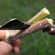 Nell’innesto a spacco comune si realizza una fenditura verticale lungo tutto il diametro del portainnesto che è stato opportunamente capitozzato, cioè privato delle sue parti vegetali. Questo tipo di innesto viene detto anche a spacco diametrale. Nell’innesto a spacco diametrale, infatti, il portainnesto appare come un tronco d’albero tagliato. Per inserire solo una marza basterà un portainnesto del diametro compreso tra due e cinque centimetri, mentre per inserire più marze sarà necessario un diametro di almeno dieci centimetri. Il taglio, nell’innesto a spacco comune o diametrale, si deve effettuare in modo da aprire in due sia il ramo con gemme che il portainnesto. Nel caso sia complicato ottenere lo spacco solo con il coltello, è meglio procedere con l’ausilio di un martello che colpisca delicatamente il dorso della lama per farla penetrare meglio nella fenditura. Per trattenere le marze ed evitare infezioni, nell’innesto a spacco comune si deve applicare del mastice che deve ricoprire tutta la superficie del portainnesto. Da ricordare che le marze vanno prelevate tramite utilizzo di una cesoia. L’innesto a spacco diametrale si può praticare sia su piante adulte che su quelle giovani.