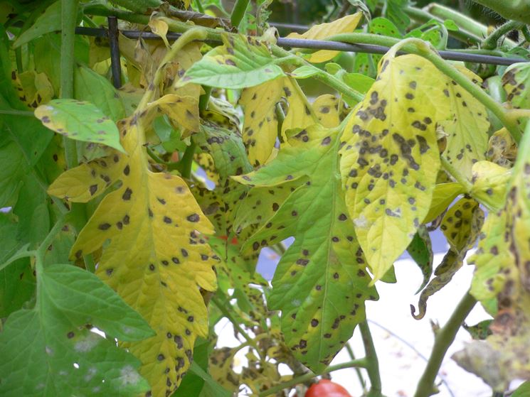 Sono molteplici i funghi che possono provocare malattie dei pomodori più o meno gravi, e che attaccano la pianta. Quelli più conosciuti, anche perché sono i più diffusi, sono la peronospora, la muffa grigia e lo oidio. Il termine peronospora indica una patologia delle piante causata da protisti che le sottraggono risorse. Si manifesta con necrosi e marciume dei frutti. La muffa grigia è una patologia piuttosto diffusa che si manifesta in condizioni di umidità e di sbalzi di temperatura. Non è facile da diagnosticare ma si presenta spesso associata a marciumi a livello delle foglie e delle radici. L'oidio, infine, chiamato anche e quasi poeticamente mal bianco, è una patologia trofica che si manifesta con la formazione sulle foglie della pianta attaccata di una specie di feltro appunto di colore bianco, simile a una polverina.