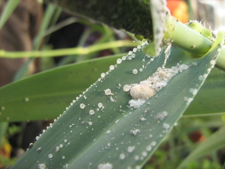 cocciniglia Come già detto all’inizio del nostro approfondimento, non tutte le specie di cocciniglie sono infestanti per la pianta. Tra quelle più temute ricordiamo la cocciniglia cotonosa(Icerya purchasi) e diverse specie di cocciniglie farinose. La specie cotonosa attacca prevalentemente legumi, piante ornamentali ed agrumi. L’insetto si presenta con un corpo di colore bianco, un dorso irregolare e una testa non meglio formata. La riproduzione della cocciniglia cotonosa avviene per via asessuata, poiché le femmine sono anche ermafrodite. I danni della cocciniglia cotonosa vengono provocati dall’abbondante produzione di melata. Le cocciniglie farinose colpiscono piante ornamentali, agrumi,vite e fico. La principale caratteristica d questi insetti è di produrre una cera filamentosa che crea uno scudo sul loro dorso. Quando le colonie sono numerose, sulla pianta colpita si forma una specie di manto farinoso. L’insetto della specie farinosa è di colore bianco ed è dotato di numerose zampe che ne consentono lo spostamento. L’olivo, alcune piante ornamentali e gli agrumi, possono essere attaccati anche da cocciniglie con zampe corte, immobili e di colore rossastro o marrone. Sempre immobili e di colore rosso sono altre specie di cocciniglie che vivono sul kaki, l’olmo, il susino, il ribes, piante ornamentali, come la magnolia, e la vite. Cocciniglie molto piccole, di colore giallastro, immobili, vivono su rami e fusti e non producono la melata.