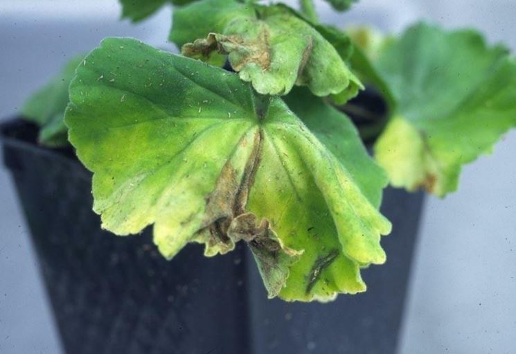 Quali sono le malattie che possono colpire i nostri gerani? Si tratta di una pianta generalmente molto resistente e per questo motivo molto apprezzata e coltivata in vaso o nei nostri giardini. Uno dei problemi più diffusi del geranio è la ruggine. In questo caso le foglie della nostra pianta appariranno di una colorazione differente sull’arancione – giallo determinata dal deposito delle spore sul fogliame. In base alla diffusione della malattia le foglie possono ingiallire e seccare lasciando la pianta completamente spoglia. Attenzione anche all’oidio o mal bianco. Qui è un fungo la causa della malattia del geranio. Le foglie mostreranno dei depositi di polvere biancastra e nello stato avanzato della malattia, la caduta delle foglie e l’assenza di fioritura. Ultima, ma non meno importante la batteriosi. Questa affezione provoca la formazione di grandi macchie di seccume sulle foglie che porteranno alla caduta delle stesse e all’indebolimento della pianta.