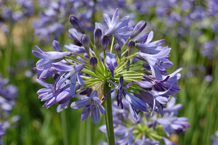 L'Agapanthus o Agapanto è una pianta con radici rizomatose, originaria dell’Africa meridionale; in primavera produce lun