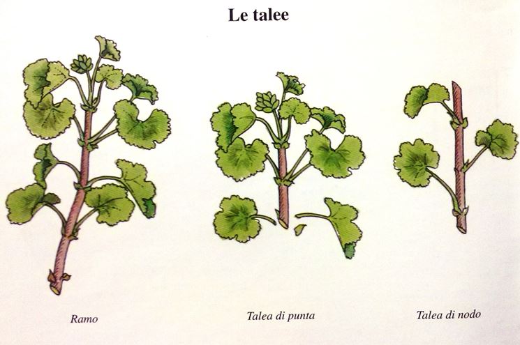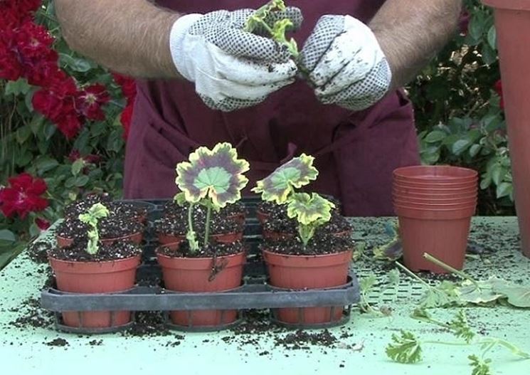 La potatura gerani effettuata in primavera permette di ottenere delle talee da cui è possibile riprodurre nuove piantine, che presenteranno le stesse caratteristiche della pianta madre (stessa varietà e colore identico). Il prelevamento di un ramo di circa sette-otto centimetri tagliato in prossimità di un nodo della pianta, ripulito delle foglie nella parte inferiore e poi posto in un nuovo vaso con del terriccio leggero permette di ottenere in due mesi una pianta giovane. Occorre prestare molta attenzione affinché la parte aerea sia mantenuta costantemente umida, servendosi ad esempio di un sacchetto di plastica. Infine è possibile la riproduzione di nuove piante anche per seme. Prelevando i semi presenti nei fiori secchi si ottengono con facilità nuove piantine. Anche con la riproduzione per seme è infatti possibile mantenere inalterata la varietà.