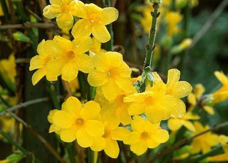 Tra le diverse piante da giardino e le numerosissime varietà di gelsomino, ci si dedicherà alla tipologia del "nudiflorum", meglio conosciuta come gelsomino giallo o gelsomino di San Giuseppe, per la sua peculiarità di fiorire in gennaio.Questo tipo di pianta da giardino spicca alla vista e all'olfatto per la cascata solare di fiori che la invade durante la stagione invernale.Si presenta come un ciuffetto di sottili rami dal colore verde scuro, le sue foglie sono dello stesso colore ed ognuna è formata da tre piccole foglioline. Questa pianta è originaria della Cina e, oltre a resistere al freddo, fiorisce proprio durante l'inverno.Durante la fioritura, lungo i rami della pianta spuntano dei fiorellini dal colore del sole e dal profumo delicatissimo che sbocciando invaderanno il ramo intero.