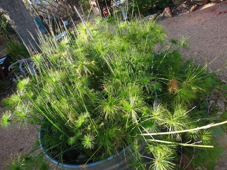 Il papiro non richiede cure particolari ma necessita di un’attenzione costante: l’acqua è la prima cosa perché, essendo una pianta acquatica, le radici devono mantenersi costantemente bagnate. Se tenete il papiro in giardino e non vivete in una zona temperata, fate attenzione: teme il freddo e se la temperatura scende a -5° c’è il rischio che la vostra pianta di papiro non sopravviva. In casa occorre invece fare attenzione al periodo in cui il riscaldamento è acceso: i termosifoni seccano l’aria e il papiro ha invece bisogno di umidità, quindi occorrerà non solo annaffiarlo spesso o meglio ancora immergerlo in un portavasi colmo d’acqua, ma anche nebulizzarlo con regolarità. Ricordate poi di tagliare sempre gli steli e le foglie ingiallite o secche e di rinvasarlo ogni due anni utilizzando un terreno sabbioso. Si riproduce facilmente per talea: scegliete uno stelo verde e rigoglioso, tagliatelo a pochi centimetri dal ciuffo, poi prendete un bicchiere colmo d’acqua e immergete lo stelo a testa in giù: in meno di un mese compariranno le radici e potrete piantare la vostra nuova pianta in piena terra.
