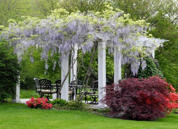 Nel panorama delle piante ornamentali da giardino, la piu' romantica delle siepi caducifoglie è senz'altro data dal Crataegus monogyna, della famiglia delle Rosaceae, noto come Biancospino. Si tratta di un albero con fiori profumati color crema che sbocciano a maggio, e frutti che maturano a settembre, simili a bacche, di colore rosso: dunque l'effetto cromatico della siepe varia piacevolmente tra la primavera e l'autunno. Per allestire un pergolato profumatissimo e incantevole nella forma e nel colore è adatta la Syringa vulgaris, conosciuta come Lillà: si tratta di una pianta cespugliforme dell'Iran ben acclimatata in Italia fino ai 1000 metri di quota; molto ramosa, fiorisce copiosamente in aprile e maggio producendo petali di colore violaceo porporino intensamente profumati e frutti con capsule oblunghe. Occorre ricordare che queste sue caratteristiche la rendono molto attrattiva verso gli insetti. Infine, il Prunus mahaleb, detto Ciliegio di Santa Lucia, ha una fioritura molto elegante all'interno di un giardino, data da fiori bianchi e profumati che sbocciano in aprile, con foglie molto piccole.