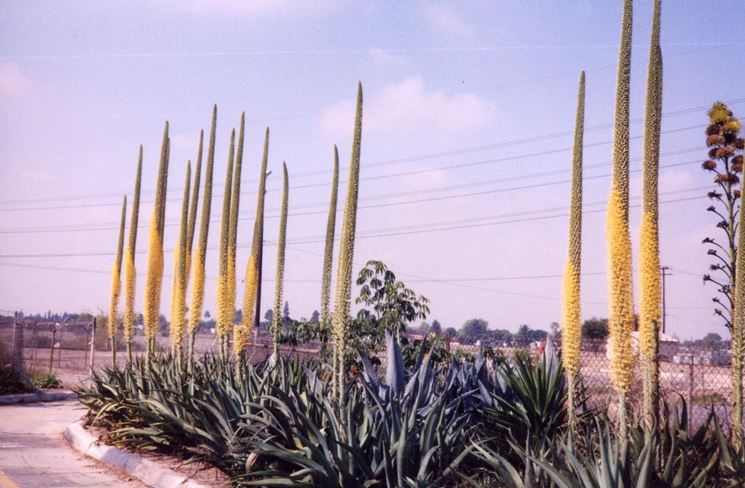 Le Agavi hanno la vita segnata dall'unica fioritura che producono nell'arco della loro durata. L'agave produce un unico fiore quando raggiunge i 20 o 30 anni e subito dopo muore. La fioritura avviene nella stagione calda, da maggio a giugno. Il fiore, si dispone a pannocchia al centro della rosetta di foglie, e ha una forma che ricorda un candeliere con bracci e può arrivare ad un’altezza di 8 metri.
