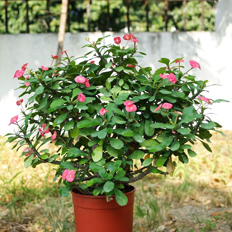 L'Euphorbia milii dovrebbe essere messa a dimora in un vaso che non abbia una dimensione eccessiva e che contenga un terriccio soffice, privo di coesione, in grado di garantire una buona umidità, ma evitando allo stesso tempo la permanenza di pericolosi ristagni d'acqua. Per garantire la salute delle radici si potrebbe provvedere a mescolare al terriccio anche delle parti di perlite, di pietra pomice o dei pezzetti di corteccia, garantendo in questo modo un naturale arieggiamento del terreno. Il concime ideale da somministrare alla pianta dovrebbe contenere poco azoto. È importante ricordarsi di non lasciare mai il terreno asciutto troppo a lungo, perché la pianta ne soffrirebbe e produrrebbe meno infiorescenze. La pianta non dovrebbe mai essere lasciata in pieno sole nelle giornate più calde.