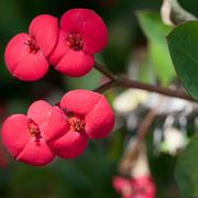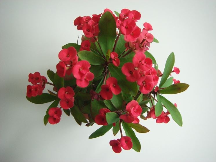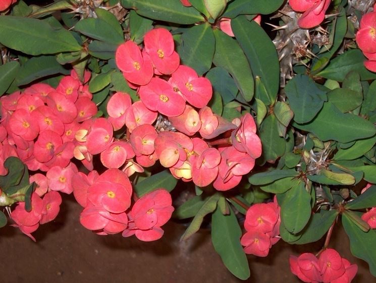 Le foglie dell'Euphorbia milii hanno la tendenza a cadere quando la pianta viene coltivata in una zona con un clima asciutto. Per un'abbondante presenza di foglie l'Euphorbia milii dovrebbe essere coltivata in un'area che abbia un clima fresco e con una buona percentuale di umidità. Nel periodo più caldo, la pianta ha delle infiorescenze sulla parte apicale dei rami. Le infiorescenze sono formate da piccoli fiorellini gialli circondati da alcune brattee (foglie modificate) dalla colorazione rossa. In caso di coltivazione in appartamento, la pianta trova condizioni ideali per mantenere la fioritura durante tutto l'anno. L'Euphorbia milii è una pianta grassa con caratteristiche particolari che necessita di annaffiature regolari, temendo climi troppo caldi e con prolungati periodi di siccità.
