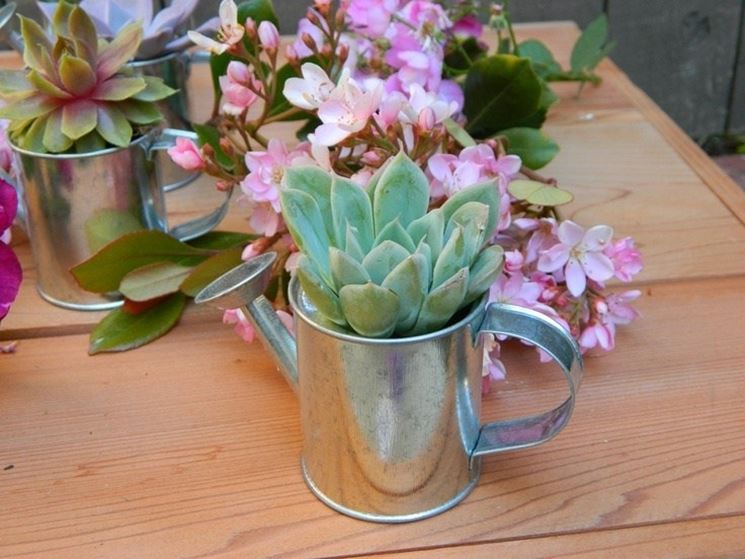 Anche se le succulente non richiedono innaffiature frequenti, per prendersi cura delle piante grasse è necessario bagnarle seguendo delle semplici regole. Innanzitutto, è importante utilizzare un innaffiatoio a collo lungo che permetta di inumidire il terreno senza bagnare direttamente la pianta e preferire un terriccio drenante che eviti i ristagni d'acqua, principali nemici delle piante grasse. Normalmente, il periodo in cui le piante grasse hanno bisogno di essere innaffiate è quello compreso tra aprile e fine agosto, con delle variazioni in base al clima e alla zona. Man mano che si va verso la stagione più calda, le inaffiature saranno più frequenti ma avverranno sempre avendo cura di verificare che il terricio sia completamente asciutto per evitare un eccesso d'acqua che farebbe marcire le piante. Durante la stagione invernale, invece, la maggior parte delle piante grasse riposa e non necessita di essere bagnata. In ogni caso, è preferibile innaffiare le piante grasse nelle prime ore del mattino o nel tardo pomeriggio.
