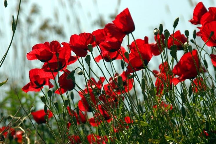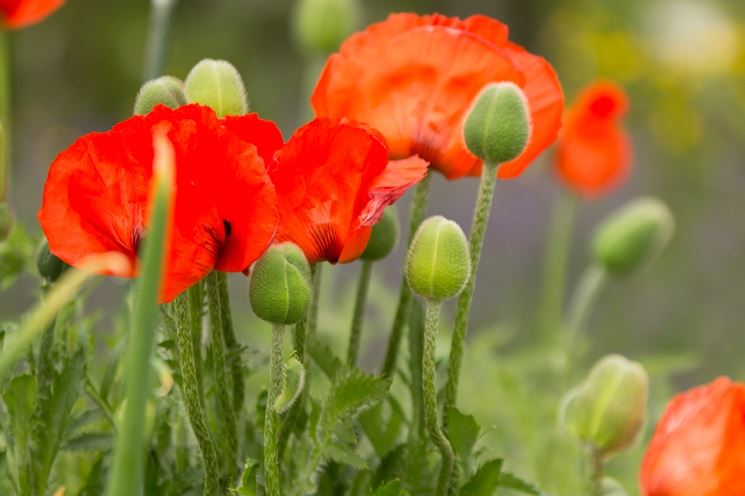 I papaveri rossi, con fiori che abbelliscono qualunque spazio all'aperto e si impongono per la vivacità dei colori, cres