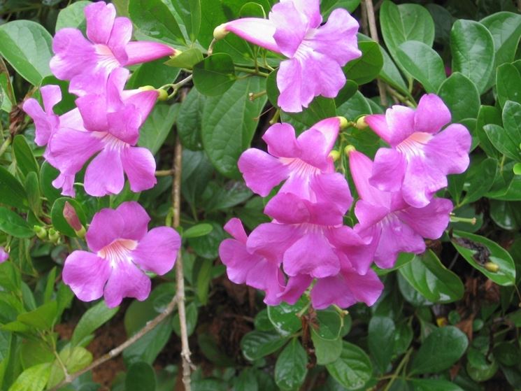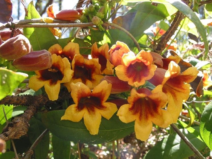 Questa pianta fa parte della famiglia, come si può facilmente intuire, delle Bignoniacee: stiamo parlando di un genere al cui interno troviamo solo una specie, di natura rampicante e sempreverde, che si dimostra particolarmente delicata.