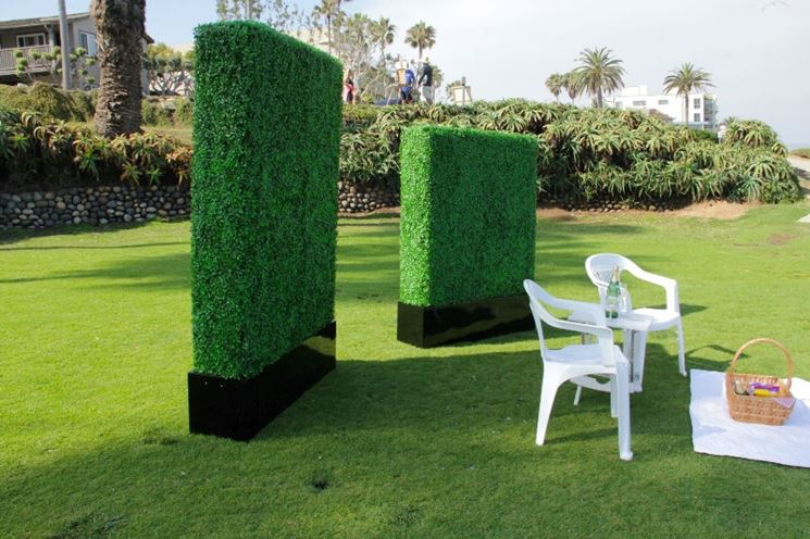 Nei garden center, o anche su internet, troviamo molte diverse tipologie di siepe finta, per tutte le tasche e tutte le esigenze. I modelli più economici sono costituiti da rotoli di rete ombreggiante, cui sono fissate piccole foglie simili ad erba, o che ricordano l'edera, in sottile tessuto di nylon; l'aspetto di queste finte siepi non è dei migliori, ma il prezzo è decisamente economico, e vi aiutano a schermare il giardino, senza spendere un patrimonio. Se desiderate qualcosa di più decorativo, sono disponibili rotoli di rete ombreggiante verde, con applicato del fogliame più realistico e resistente. Per chi invece desidera una struttura più bella, e anche durevole, troviamo delle griglie in plastica flessibile, cui sono applicate foglie spesse e resistenti, che simulano il ligustro, il bosso, il lauro ceraso; sono disponibili anche modelli con fiorellini e bacche invernali, per un tocco ancora più decorativo.