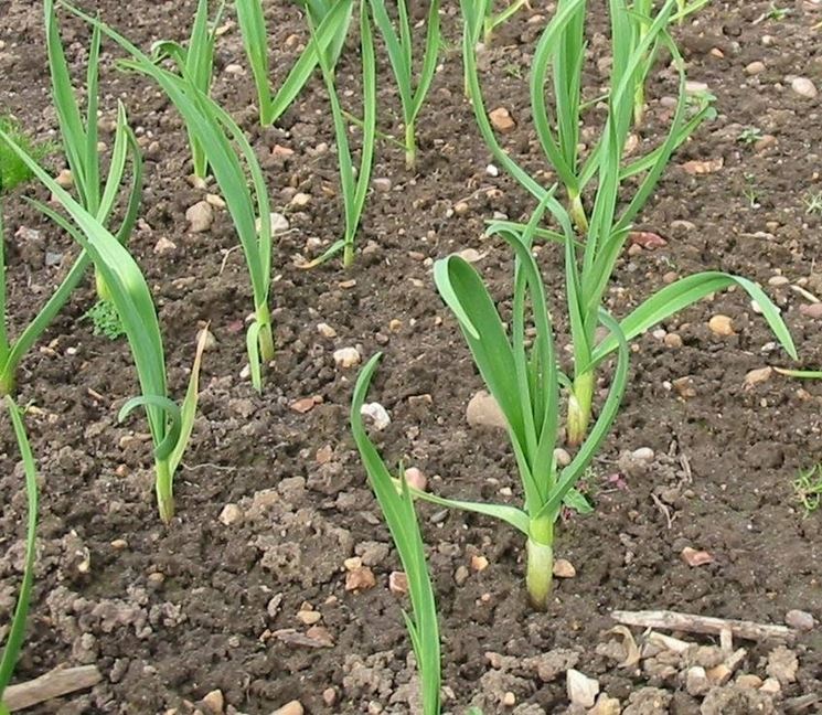 L'aglio può essere anche piantato in primavera, non appena il terreno può essere lavorato, ma è meglio se viene piantato in autunno, perchè le piante vengono più grandi e saporite. Nelle zone con un forte gelo, l'aglio va piantato da 6 a 8 settimane prima che arrivi il gelo. Nelle aree meridionali invece, febbraio o marzo è il momento migliore per piantarlo.Vanno divisi i chiodi di garofano dal bulbo pochi giorni prima di piantare l'aglio, ma va mantenuta la buccia su ogni singolo spicchio. Gli spicchi vanno piantati circa un mese prima che il terreno geli.Inserite gli spicchi a 4 centimetri di profondità, in posizione verticale (il lato largo principale deve essere rivolto verso il basso e l'estremità appuntita rivolta verso l'alto).In primavera, più le temperature calde, prima i germogli emergeranno dal terreno.