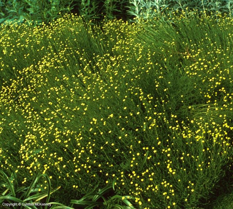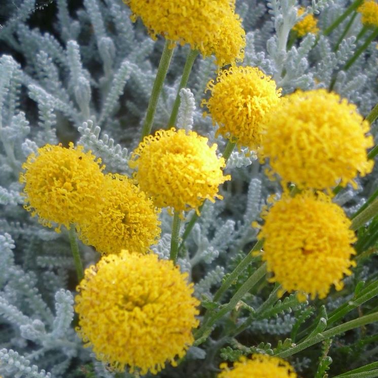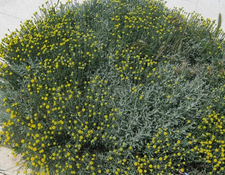 La Santolina chamaecyparissus è un piccolo arbusto sempreverde originario dell’Europa mediterranea; le piante di alcuni