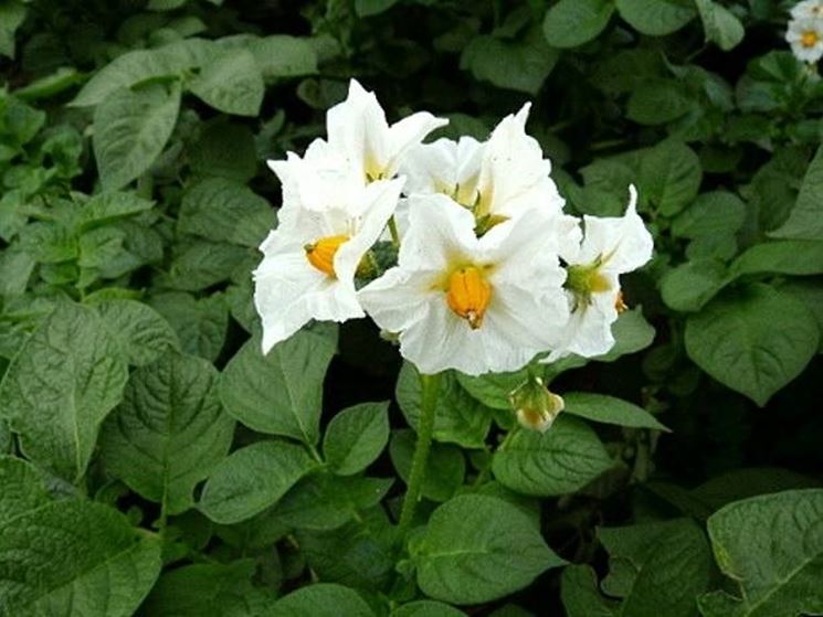 Il tubero che siamo abituati a mangiare non è il frutto della pianta, ma un ingrossamento dei rizomi sotterranei che ha la funzione di immagazzinare le sostanze nutritive di riserva per i nuovi germogli.Le radici non sono profonde, ma sono molto ramificate. La parte fuori terra è formata da uno o più fusti eretti che hanno un'altezza variabile dai sessanta centimetri al metro e mezzo che a maturazione ingialliscono e si ripiegano sul terreno. Su di loro si innestano foglie composte e pinnate irregolarmente, formate da sette o nove foglioline. All'apice del fusto troviamo le infiorescenze, formate da fiori a cinque petali con colori che vanno dal giallo all'argento, con stami gialli.Il frutto è rappresentato da una bacca giallastra. Non è commestibile perché contiene la solanina, un'alcaloide tossico.