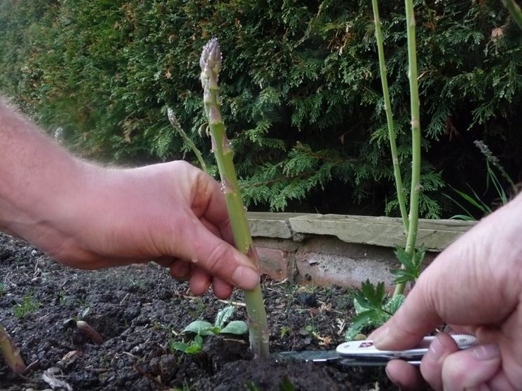 Nelle coltivazione degli asparagi si può andare incontro ad attacchi di parassiti sia di origine vegetale che animale. L'asparago può essere anche rovinato da pericolose patologie fungine che, se non curate in tempo, possono anche compromettere interi raccolti. Oltre ai rimedi naturali per tenere lontani gli insetti come i decotti a base di erba da aggiungere all'acqua di irrigazione, è possibile ricorrere a prodotti specifici antiparassitari o, per i casi di patologie più gravi, i pesticidi chimici. I prodotti vanno acquistati presso un negozio specializzato. La coltivazione dell'asparago durerà per anni ed è importante mantenere il prodotto sano. La raccolta degli asparagi si effettua a scalare per un periodo di oltre 2 mesi. L'asparago va tagliato rasoterra avendo cura di utilizzare uno strumento affilato e non arrugginito.