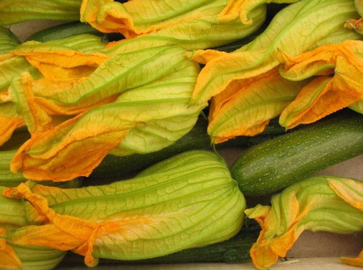 Le zucchine vanno raccolte prima della loro completa crescita. Infatti se si lasciano vegetare liberamente, possono raggiungere anche il mezzo metro di lunghezza. La grandezza del frutto dipende dal momento della raccolta. In genere la zucchina viene tagliata dalla pianta quando è ancora piccola. In un metro quadro di terreno si raccolgono 3-5 chilogrammi di zucchine. Le zucchine si raccolgono quando hanno la buccia lucente e sottile, la polpa soda e compatta e prima che si formino i semi. Le zucchine se non sono perfettamente mature si conservano più a lungo. I fiori di zucchina sono reperibili ogni giorno. Si consiglia di raccoglierli al mattino presto, quando sono completamente aperti, ricordandosi di lasciarne qualcuno alla pianta per consentire l'impollinazione. I fiori sono buoni fritti, passati alla pastella.