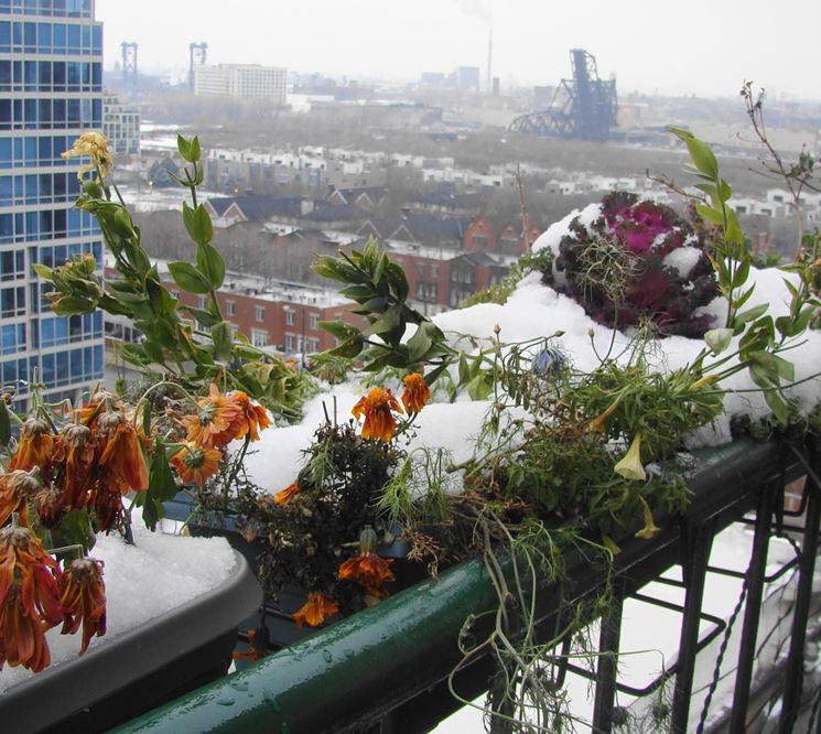 L'orto nel balcone d'inverno non è ugualmente divertente. I prodotti tipici dei mesi freddi richiedono molta terra e il gioco può non valere la candela, anche perché i prezzi potrebbero aumentare anziché calare. Per chi però vuole piantare il proprio orto e non acquistare le piantine già pronte, l'inverno serve a preparare l'orto per l'arrivo della primavera. La maggior parte delle coltivazioni si piantano entro l'arrivo del vero freddo, quindi tra ottobre, novembre, e al più tardi dicembre. Ecco quindi che entro dicembre si potranno piantare piselli, fagioli e asparagi per un raccolto primaverile, oppure lattuga, lattughini e spinaci che saranno pronti in primavera avanzata. Durante l'inverno più rigido bisogna rassegnarsi, perché l'orto nel balcone non si può proprio coltivare. Solo l'aglio dà soddisfazioni tutto l'anno: seminandone qualche spicchio qua e là, si avrà un raccolto a qualsiasi temperatura.