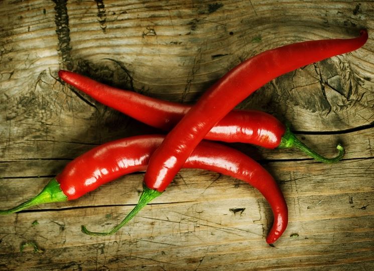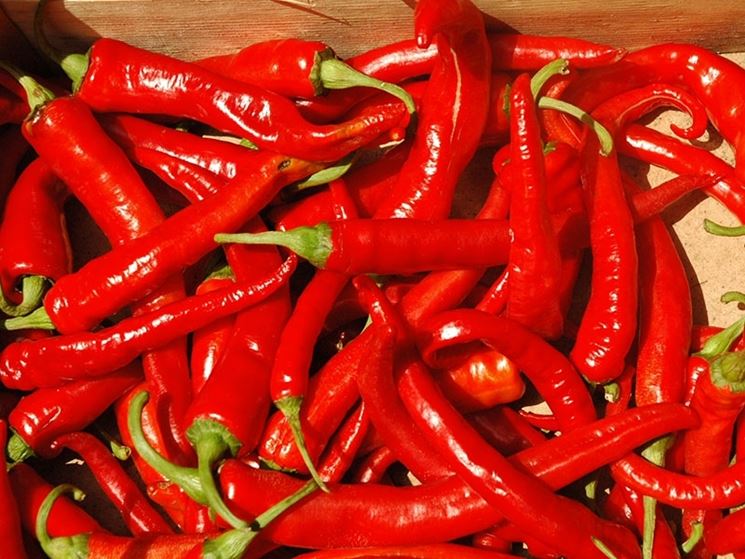 | Naso di cane | Frutti a mazzetti, a triangolo equilatero. Lunghi mediamente da 12 a 20 cm, di colore rosso vermiglio da maturo, prima verde o a chiazze | Abbastanza bassa: di solito non supera le 3000 Unità Scoville | Pianta bassa (60 cm) e larga, con molte ramificazioni. Il più delle volte necessita di tutori. I frutti sono a mazzetti rivolti verso l’alto | Orticola coltivabile anche in vaso. I frutti verso l’alto lo rendono estremamente allegro e ornamentale | Fruttato | Adatto sia all’essicazione sia all’utilizzo da fresco. Data la forma e la polpa compatta si farcisce facilmente. La sua polvere è molto usata negli insaccati tradizionali. |