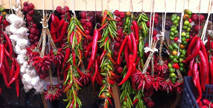 carissime spezie orientali.Già alla metà del 1600 questa coltura, come ci racconta Tommaso Camapanella, era estremamente diffusa in tutta la regione; all’inizio del 1800 il peperoncino era ormai diventato indispensabile per un gran numero di piatti essendo praticamente l’unico condimento a disposizione degli strati più poveri della popolazione. Secondo molte fonti veniva addirittura utilizzato correntemente come merce di scambio.In Calabria e nelle regioni limitrofe il peperoncino è molto coltivato. Si possono quindi trovare molte varietà diverse, per lo più denominate in maniera tradizionale: non derivano di solito da linee pure e non sono frutto di una selezione professionale. Si possono quindi trovare piante simili nel portamento, nella forma del frutto e nella piccantezza, ma è del tutto probabile che vi sia anche una grande variabilità. Precisiamo inoltre che, nonostante la grande reputazione del peperoncino calabrese, la sua piccantezza, se confrontata con altre tipologie coltivate in Messico, Africa o Asia, risulta solamente media, se non bassa.