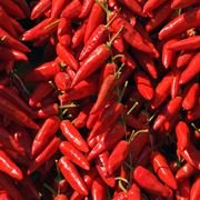 | Peperoncino di Soverato, Diavolicchio, Calabrese a mazzetti | Di piccole dimensioni (lungo fino a 3 cm), a forma di cornetto. A maturazione assume un bel color rosso acceso lucido | Media, da 10.000 a 30.000 Unità Scoville | Piuttosto compatta (da 50 a 60 cm di altezza), ma allargata, con molti steli basali. In aree ventose può richiedere sostegni. I frutti crescono a mazzetti | Ottimo nell’orto, ma cresce bene anche invaso. Bello anche come pianta ornamentale nelle bordure | Dolce e fruttato | Da fresco su pasta, pesce, formaggi e nelle salse. Può essere essiccato facilmente al sole. Ottimo per creare ornamentali collane di peperoncini essiccati |