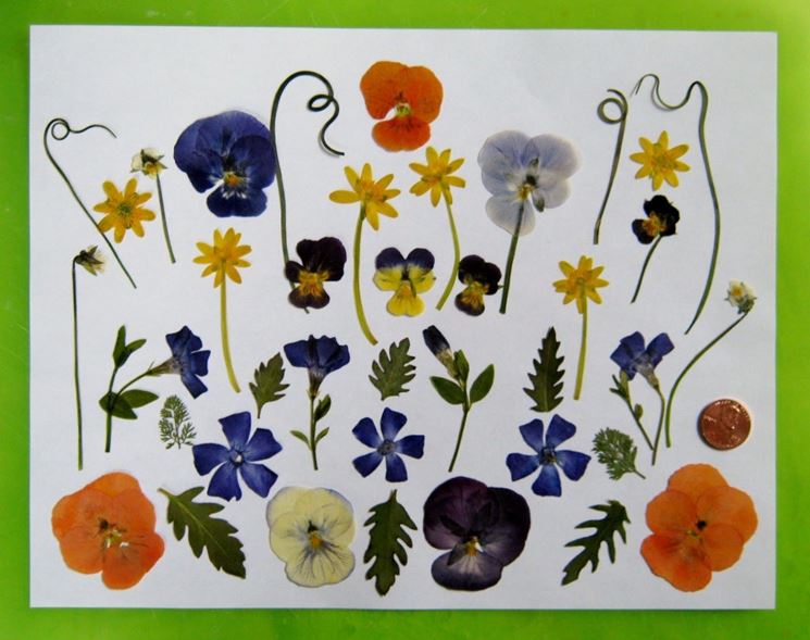 Dopo aver preparato i fiori, si passa a pressarli per la fase di essiccazione. In commercio è possibile acquistare una pressa per fiori, reperibile sia in negozi specializzati in belle arti o fai-da-te, sia in siti online, ma si può realizzare anche in casa. È composta sostanzialmente da due tavolette in legno (generalmente compensato o legno di abete), unite da quattro barre filettate poste agli angoli, che si stringono tra di loro mediante viti a farfalla. Al centro delle due tavole si trovano dei fogli di cartone, destinati ad ospitare i fiori. In alternativa alla pressa, si può ovviare al problema utilizzando due grossi libri pesanti. Prima di inserire i fiori, si avrà cura di stendere uno strato di carta di giornale ed uno di carta assorbente sulla tavoletta inferiore, poi si posizionerà il fiore sistemandolo nella posa desiderata, ricoprendolo infine con altra carta assorbente e di giornale. Posta la tavoletta superiore, si stringeranno le viti e si aspetterà la totale essiccazione, cambiando a giorni alterni gli strati di carta (in questo modo, i liquidi presenti nei tessuti del fiore verranno assorbiti).