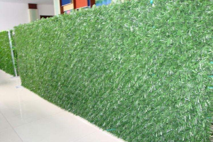 La Siepe artificiale o sintetica rientra fra le piante finte da esterno in quanto è essa stessa formata da piante artificiali assemblate fra loro in modo da creare una barriera totalmente omogenea e verticalmente coprente. Essa è la soluzione ideale quando si tratta di dover marcare dei confini o delimitare degli spazi per evitare che possano esserci sguardi indiscreti, una sorta di 'muro' verde per tutelare la privacy, insomma. Non a caso, viene spesso utilizzata nei locali pubblici all'aperto per delimitare lo spazio considerato 'privato'. Queste piante finte da esterno possono arrivare fino a due metri e mezzo di altezza ed essere collocate persino sopra vasi, muretti, rialzi da terra, fissandole in ogni caso con appositi supporti per evitare che vengano spostate da vento, pioggia, ecc.