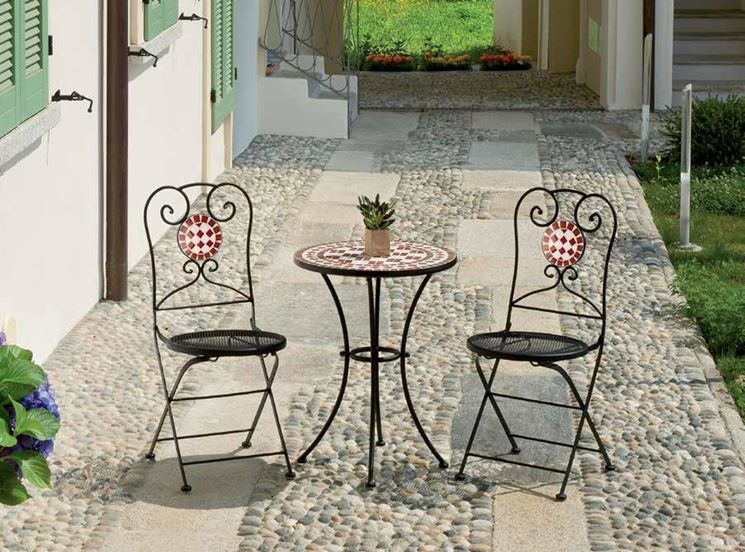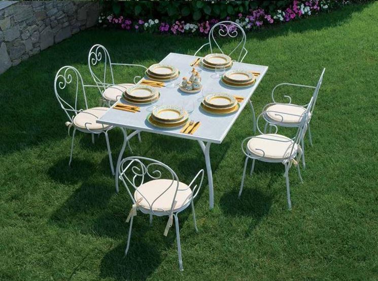 Una soluzione d'arredamento per esterni spesso proposta è quella di mantenere una certa continuità tra lo stile d'arredo interno e quello da esterni. La scelta del ferro potrebbe costituire una rottura rispetto allo gusto che caratterizza l'indoor, eppure questa crasi non risulta fastidiosa visto che il metallo costituisce da lungo tempo una perfetta soluzione per l'arredo da giardino. Un tocco di continuità si può ottenere però usando una tappezzeria in comune dentro e fuori, creando pannelli di stoffe per ombreggiare o cuscini che rendano più comode le sedie. La verniciatura e le rifiniture con l'antiruggine permettono ai mobili di sopportare bene le intemperie e le aggressioni degli agenti climatici. I punti critici, cioè gli spigoli e le giunture, possono comunque essere mantenuti in ordine ripulendo periodicamente la leggera patina di ossidazione che col tempo si forma sul metallo. Ridipingere i mobili ogni tanto, poi, diventerà il pretesto migliore per dare un tocco di novità cambiando colore ai mobili a seconda dei gusti o delle mode del momento.