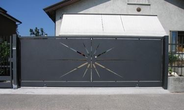 La caratteristica del cancello scorrevole è che l'apertura avviene appunto all'interno di una corsia. Può essere scelto in versione automatica attraverso l'installazione di un motore, apertura che oggi viene maggiormente preferita rispetto all'apertura manuale, perché risulta essere più comoda e pratica. Chi avesse già un cancello scorrevole con apertura manuale può sempre decidere di installare l'automatismo sostenendo solo il costo del motore. L'apertura del cancello scorrevole automatico, qualora dovesse mancare la corrente elettrica, può avvenire manualmente. Quest’alternativa è stata prevista nel caso in cui dovessero verificarsi dei guasti e il cliente abbia comunque necessità di uscire dall'abitazione. Il cancello scorrevole è realizzabile con diversi materiali, e soprattutto il cliente può scegliere tra vari modelli. Il cancello scorrevole può essere realizzato in ferro, la tipologia del motivo solitamente è scelta nella versione composta da una serie di bacchette di ferro, mentre nei modelli più articolati si possono riprodurre anche varie forme. Il cancello scorrevole completamente chiuso impedisce di vedere all'interno dell'abitazione, cosa che invece non accade con il cancello realizzato con le bacchette in ferro. Nella versione completamente chiusa si possono anche eseguire dei piccoli disegni traforati direttamente sul cancello.
