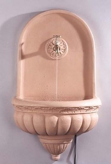 La sua particolare struttura le permette di avere al tempo stesso sia una funzione estetica che per uso potabile. Le fontane a muro assolvono una funzione estetica di arredamento in quanto la loro struttura, per quanto semplice, può essere resa più graziosa grazie a dei particolari. Possiamo far riferimento alla base sulla quale è installata la fontana, al muro stesso che potrebbe essere rivestito con dei mattoni particolari o anche con delle pietre che per colore possono richiamare l'intero arredamento del giardino. La fontana stessa è fissata in maniera tale che non siano resi visibili i supporti. Anche quelle realizzate in ghisa che hanno un peso sicuramente superiore rispetto alle fontane classiche sono rese stabili dal metodo di fissaggio. La fontana a muro si compone solitamente di una sorta di contenitore che serve per raccogliere l'acqua, la quale sgorga per mezzo di un rubinetto. Così descritta, la fontana a muro sembra molto semplice, ma in realtà può rappresentare anche un modello ornamentale grazie alle diverse strutture e ai materiali usati.