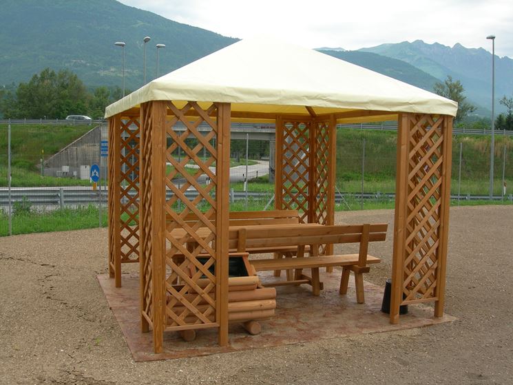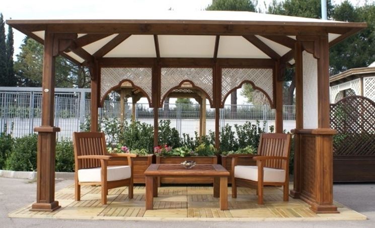 Esistono sul mercato diverse tipologie di gazebo in legno da giardino. Oltre alle dimensioni, che sono personalizzabili dall'acquirente, il gazebo può avere disegni e strutture di vario tipo. Naturalmente, l'aspetto estetico deve essere elegante e piacevole da vedere. La tipologia di gazebo più classica è quella realizzata con un tetto quadrato contenente delle falde spioventi. Con il trascorrere del tempo sono stati introdotti i gazebo circolari o di altre particolari forme, come quelli esagonali e ottagonali. Anche per quanto riguarda il tipo di copertura superiore è possibile fare delle scelte: esistono coperture in tela, da rimuovere in autunno, e coperture realizzate in legno. In determinati modelli la copertura non si limita alla parte superiore, ma viene estesa ai lati, creando delle strutture solo parzialmente aperte.