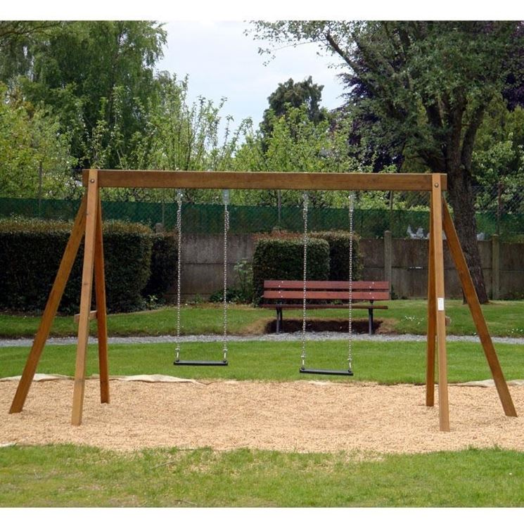 Le altalene in legno, pur presentando un aspetto in grado di fondersi perfettamente con la natura circostante, hanno sicuramente dei piccoli inconvenienti che le altalene in plastica non presentano. Il legno che deve rimanere esposto per lunghi periodi all'azione della pioggia e delle intemperie è trattato con sostanze particolari che, pur non coprendo l'aspetto originale, creano una pellicola di protezione che aiuta l'acqua a scivolare sopra. Tutti gli oggetti realizzati in legno che devono essere esposti in giardino durante il periodo invernale sono sottoposti al medesimo trattamento. Naturalmente dopo diversi anni, il legno inizia a presentare dei piccoli problemi che possono essere risolti personalmente rivolgendosi presso un negozio specializzato in prodotti per il legno e acquistando un olio protettivo. Ovviamente, il rivenditore in base a quanto descritto dal cliente saprà consigliare anche altri prodotti. L'altalena in legno ha un aspetto piuttosto possente se paragonata all'altalena in plastica. Generalmente è lasciata nella colorazione naturale, ma può essere dipinta anche con altre tonalità. La struttura si compone di due travi di legno per ciascun lato fissate obliquamente e una trave orizzontale tra esse, mentre il seggiolino realizzato in legno può essere nella versione chiusa o aperta. L'altalena in legno deve essere fissata a terra attraverso l'uso di bulloni, sia se è presente il terreno sia se c’è una pavimentazione. Il suo aspetto la rende particolarmente interessante tanto da essere sempre più scelta per averla in giardino. La grandezza varia a seconda dell'esigenza di chi la acquista e può essere con uno o con due seggiolini.