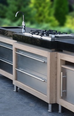 Il materiale che si preferisce usare è l'acciaio perché è resistente ed igienico, quindi può essere usato anche come piano d'appoggio. Oltretutto sembra assomigliare molto a una cucina industriale, seppur il design abbia cercato di innovare le forme per renderla meno tradizionale. La dimensione è piuttosto ridotta ma non manca nulla: un piano cottura, un comodo lavello, un piano d'appoggio, dei cassetti e un frigo. In questo caso facciamo riferimento ad una cucina da giardino piuttosto completa. La grandezza di ogni elemento è certamente ridotta, infatti, il frigo deve essere usato solo per mantenere in fresco le bevande e il cibo che dovrà essere immediatamente consumato, poiché è piuttosto piccolo, ma comunque adatto a questa funzione. Non tutte presentano dei cassetti ma possono avere in alternativa delle mensole, alcune volte realizzate in legno. La combinazione di legno e acciaio è un'altra soluzione per la realizzazione delle cucine da giardino. Il legno infatti conferisce un aspetto che meglio si sposa con il resto dell’arredamento del giardino.
