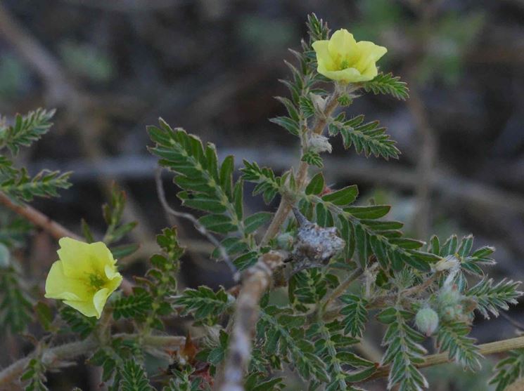 Il tribulus terrestris è una pianta erbacea che appartiene alla famiglia delle Zygophyllaceae; viene chiamata anche con il nome comune di vite puntura o caciarello, ed era diffusa inizialmente in Asia e in India, ma al giorno d'oggi si può trovare facilmente anche in Europa e in America. In Italia ormai è comunissima; cresce prevalentemente lungo le spiagge, o in luoghi sassosi. Infatti, non è inusuale vederla costeggiare le strade sterrate della ferrovia. Il tribulus terrestris deve il suo nome al fatto che i boccioli dei suoi fiori, quando sono chiusi, sembrano dei triboli, che erano delle armi a quattro punte usate in guerra dagli antichi romani. Il tribulus terrestris è un cespuglio che raggiunge al massimo il metro di altezza, e produce delle piccole infiorescenze gialle. In America del Nord viene considerata una pianta infestante, e di conseguenza viene rimossa.