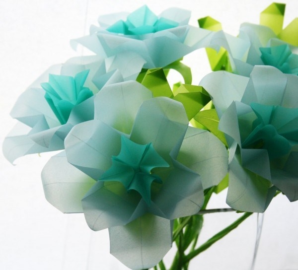 Vediamo infine come dare la forma definitiva al vostro fiore; innanzitutto vi occorrerà tirare con delicatezza i primi petali ottenuti, mantenendo sempre il foglio orientato nel verso che vi consentirà di vedere le ultime pieghe effettuate. Si consiglia altresì di maneggiare delicatamente i petali creati soprattutto nei passaggi precedenti, al fine di evitare che essi possano strapparsi; va sottolineato al contempo che potrebbe essere necessario (in alcuni casi) aprire leggermente il fiore per ottenere i restanti petali dei quali esso andrà a comporsi. Non appena avrete ultimato anche questo passaggio, assicuratevi di aver disposto il lembo in posizione quasi perfettamente verticale e ripetere l'operazione sopracitata per altre quattro 'alette'. Se preferite, potete ornare i petali del vostro fiore con dei disegni a piacere.